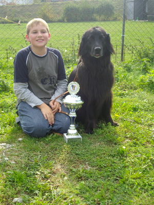 | Das 1. halbe Jahr verging wie im Flug. Aus der kleinen schwarzen Maus, wurde sehr schnell ein schlaksiger Junghund. Den spitzen Zähnen ist manch ein Schuh zum Opfer gefallen. Im Oktober wurde die Jüngstenbeurteilung und die 1. Ausstellung in Immendingen besucht. Fazit: der Hund ist liebevoll gefüttert, also er ist zu dick!!!!! |