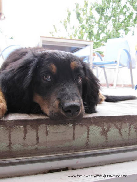 Dantes wurde als zweiter und auch schwerster Welpe um 20.30 geboren. Sobald genug Luft in seiner Lunge war, hat er durch lautes bellen allen mitgeteilt, dass er da ist. Dantes ist ein sm Rüde mit kompletter Markenzeichnung. Er war eine absoluter Schmuser und ein Clown beim Bilder machen. Dieter ist es sehr schwer gefallen, ihn abzugeben. Dantes wohnt jetzt bei bei Fam. Nardella/Müller-Karpf Bilder von Dantes Zum vergrößern "Klick" in das Bild!