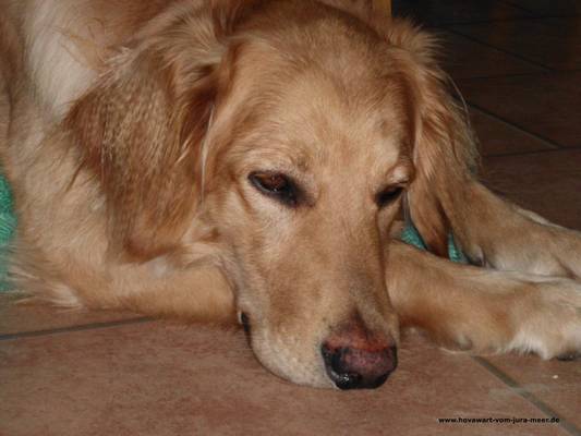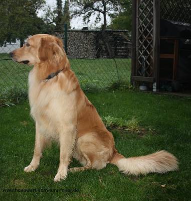 Beurteilung CAC Tuttlingen 2013, Richterin: Frau Annette Gund: knap 2,5 Jahre alter, ideal großer, sehr harmonisch proportionierter Rüde, von etwas dunklerem Blond mit korrekten Aufhellungen, vorzgl. proportionierter Kopf, mit etwas weit hinten angesetztem aber korrekt großem Behang, mittelbr. Augen, vorzgl. Pigmentierung und vollst. Schere. Brustbreite und -tiefe sind korrekt, sehr fester, gerader Rücken und in allen Teilen korrekte buschige Rute, die VH ist in allen Teilen korrekt, HH vorzgl. gewinkelt, die Pfoten sind leicht ausdrehend, flüssiges, leichtfüßiges Gangwerk, vorzgl. Futterstand, charmantes, freundliches Wesen. Vorzüglich, Platz 2. Diego hat auch eine eigene Homepage: