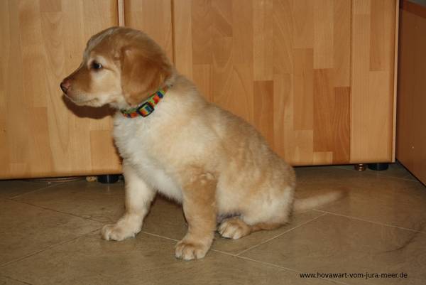 Elton am 35. Lebenstag Gewicht: 3033 gr. Elton behauptet seine Position als schwerster Welpe. Er ähnelt sowohl vom Aussehen als auch vom Temperament her sehr seinem Halbbruder Diego. Aus diesem Grund wird er von Patrick liebevoll "Diego 2.0" genannt.