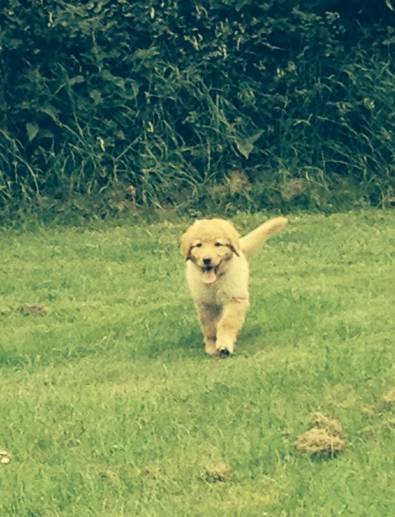 Finley ist nun schon einige Zeit bei uns und hat auch schon seine ersten "Abenteuer" erlebt. Er war mit uns auf 2 Hochzeiten und hat schon zweimal in Hotels übernachtet. Er macht das wirklich super und wir sind mega stolz auf ihn! Auch das waten durch Bäche gefällt ihm immer mehr. Er mausert sich gerade zu einer kleinen Wasserratte. Sein Lieblingsplatz in unserem Garten ist - wie kann es anders sein - unter der Bank. Ansonsten üben wir viel mit ihm und freuen uns nun auf unseren ersten kleinen Urlaub im Allgäu.