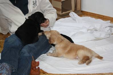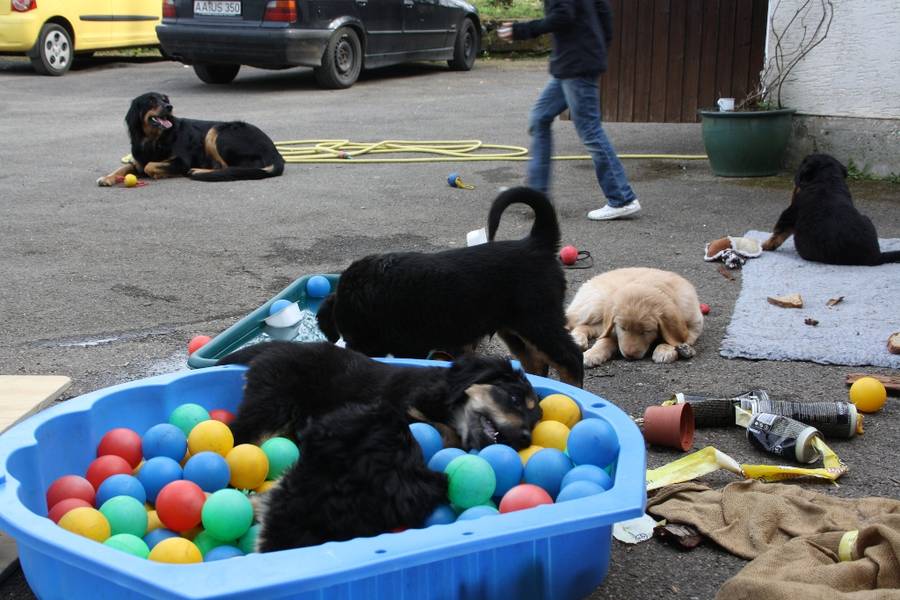 Der schwarzmarken Rüde Apollo (1. Reihe, ganz rechts) sieht seinem Vater Bono zum Verwechseln ähnlich!
